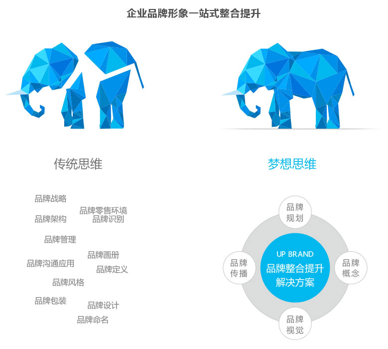 不论是创建新或是重塑旧品牌,梦想传播均可通过严谨并具前瞻性的作业为客户提供准确有效的品牌整合提升解决方案。我们汇集国内品牌策略专家和顶尖的设计师,联合中国美院资深教师担当创作伙伴,深度挖掘品牌精髓,广度整合品牌传播,让品牌定位和品牌形象保持高度的统一,建基于现有的,指向未来,展现宽广、深邃而又独特的品牌形象,统一塑造、统一管理,严格导入、有效评估,整合提升你的品牌发展,引领市场变革!
