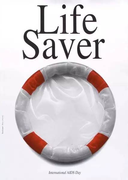 世界艾滋病日海报:救生圈能够拯救生命,避孕套帮你避免艾滋病。