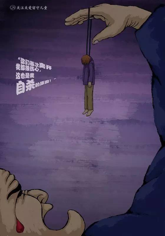 关注留守儿童海报:“你们每次离开我都很伤心,这也是我自杀的原因!”
