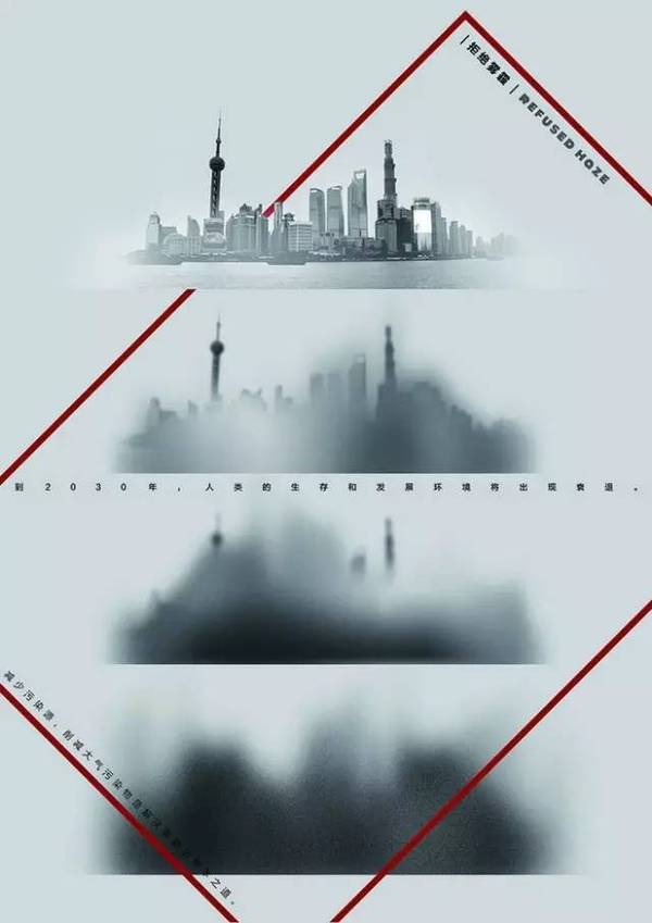 拒绝雾霾公益海报:站在外滩,却什么也看不见。