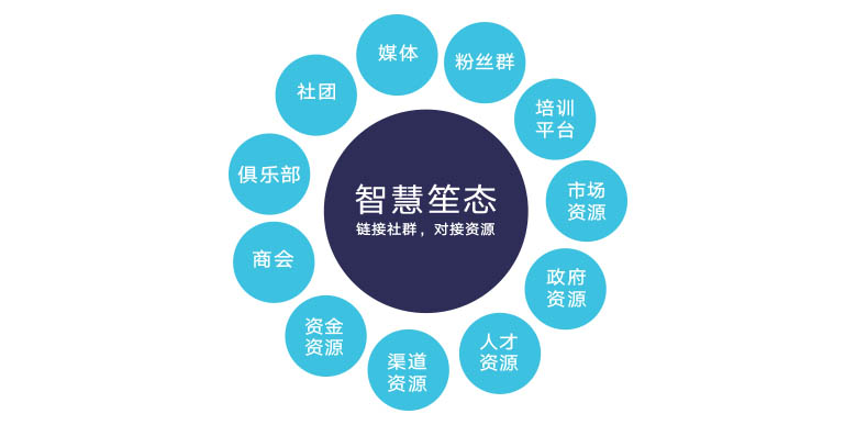 智慧笙态是梦想传播注册的资源整合商业生态圈服务平台,基于圈子、人脉、六度空间概念,整合培训机构、商会、政府、金融机构等各种社群人脉资源,帮助客户提供资金、渠道、客户和人才等资源,为客户提供可持续发展的智慧和资源,但是我们只做客户领袖最贴心的陪伴者